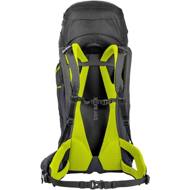 La combinaison d’un grand filet à mailles dans la partie arrière et d’un cadre en acier à ressort léger et hautement élastique garantit une excellente ventilation. L’espace de ventilation entre le sac à dos et le système de transport, ainsi que les accès de ventilation assurent un confort climatique parfait.